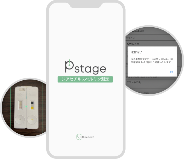 Pstageアプリは、株式会社シルクリ技研が製造販売する製品(Pstage)の測定結果解析および結果報告を行うためのツールです。製品(Pstage)を購入して測定された被測定者がアプリ機能を利用して写真画像を撮影し、サーバーシステムに送信する機能と送信された画像に基づき解析された測定結果レポートを返信機能です。